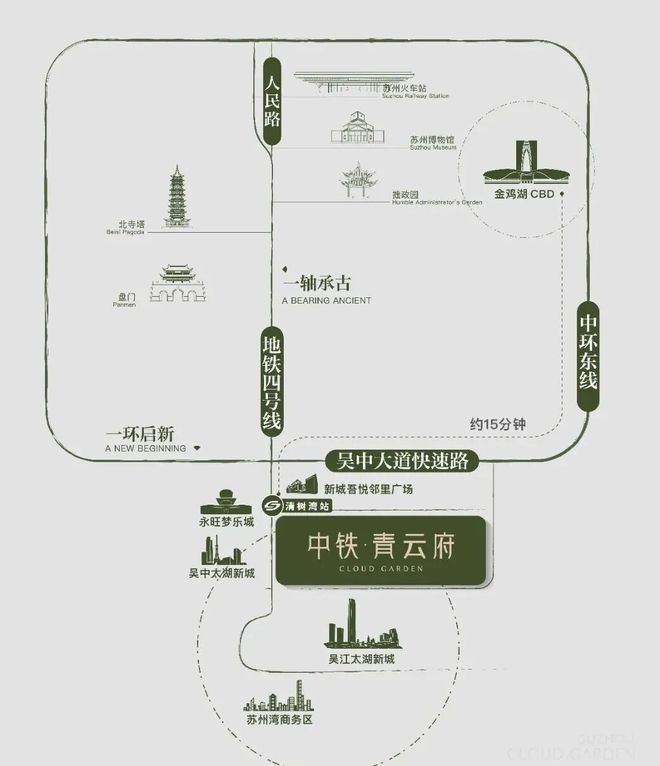 ◎速度先锋——中环线分钟速达姑苏主城、狮山核心区、金鸡湖CBD,以立体路网焕新通勤效率,勾画“半小时全城生活场”。